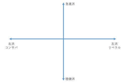 政治や経済の分野では「保守(コンサバ)」と「革新(リベラル)」、「右派」と「左派」のような思想による区分けがされますが、もう一つの軸として「急進派」と「穏健派」のような手段による区分けもあります。 この区分自体はまあ一般的です。 急進派と穏健派…