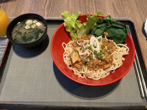困ったものです。 朝食 朝は和風なのかどうなのか微妙なラインの朝食を選択。味噌汁が付いていたので和食のように見えたものの、麺は日本風ではありませんでした。 美味しかったのですが、あまり食が進まず。 今にしてみればすでに何かしらの兆候があったの…